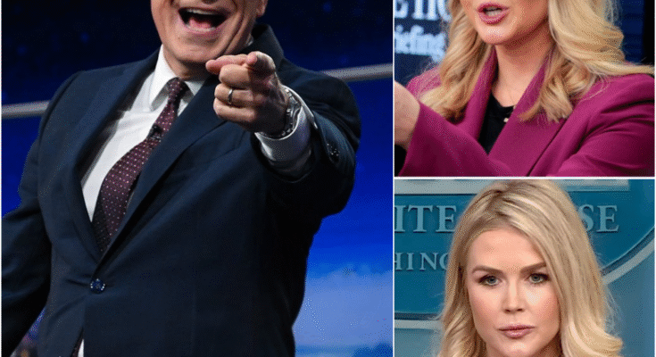 Karoline Leavitt strode out like she owned the place. Chin lifted, hair lacquered to perfection, a stack of lines polished in the mirror before stepping into the glare. She wanted a platform — and she thought she was about to use Colbert’s. Her walk carried swagger. Her eyes scanned the audience as if they were hers to command.
