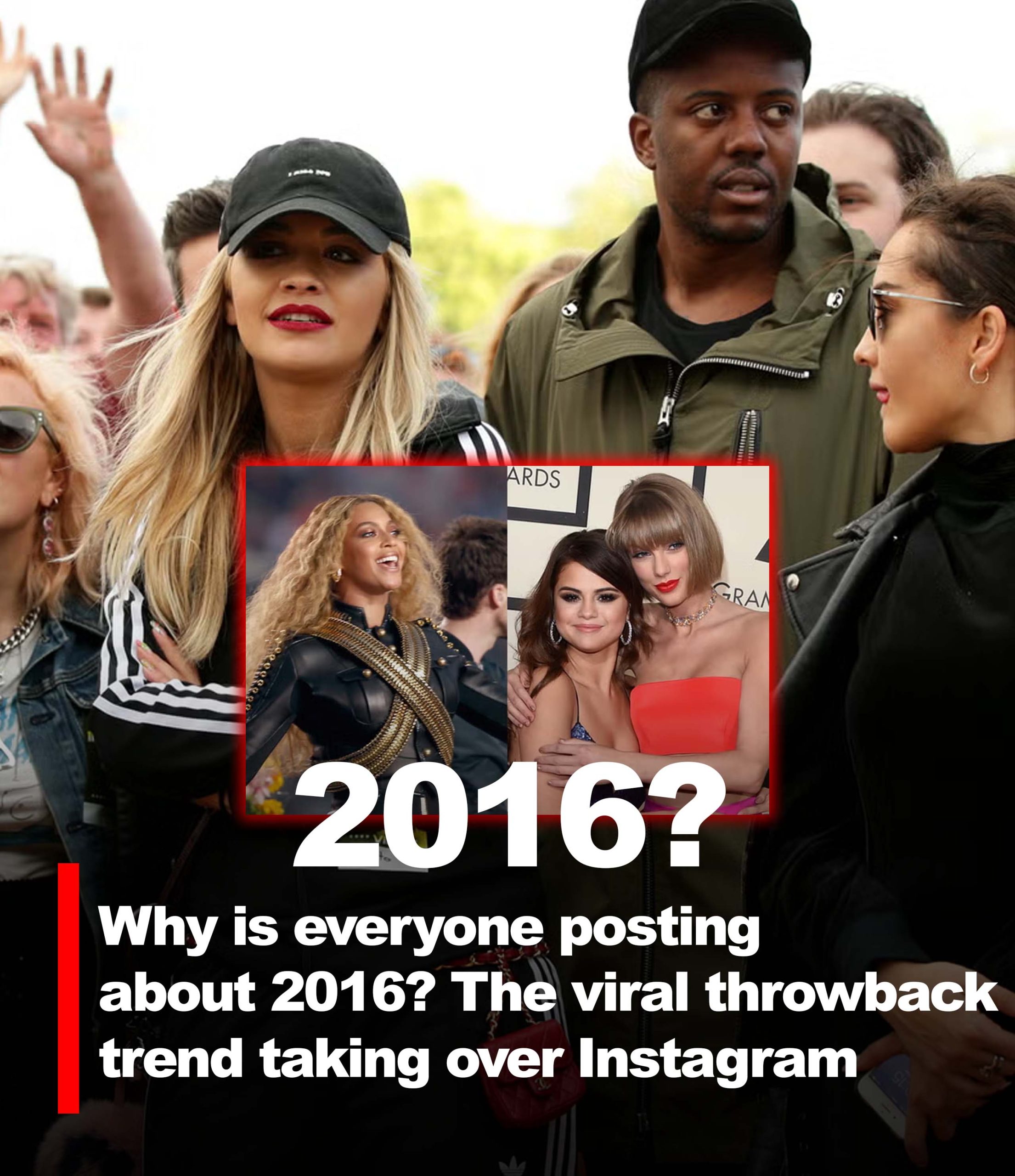 Beyoncé, Selena Gomez and Taylor Swift were responsible for some of the radio hits and cultural hot topic moments that made up 2016. Now, the year is making a comeback on social media (Getty Images)